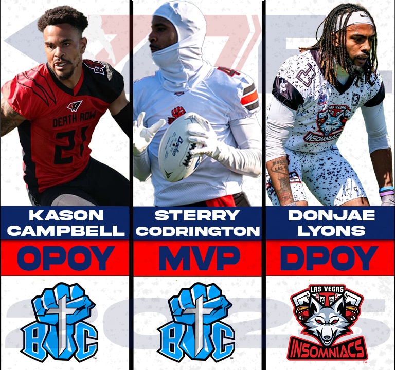 💪 Defensive Player of the Year:Donjae Lyons – Las Vegas Insomniacs Representing the West, Lyons set the tone defensively with game-changing tackles, turnovers, and leadership that kept the Watchmen defense among the league’s most feared.
