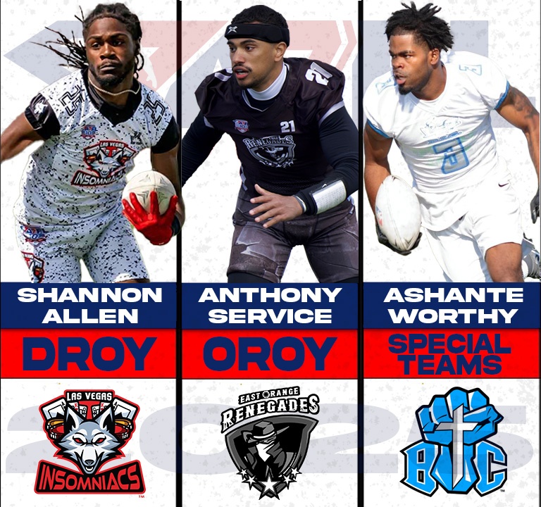 🧱 Defensive Rookie of the Year:Shannon Allen – Las Vegas Insomniacs Allen’s explosive debut season put offenses on notice, his speed off the edge and relentless pursuit made him a standout in every matchup.